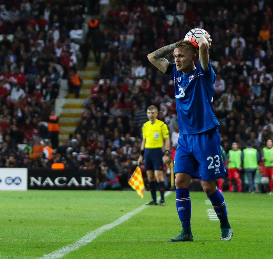 Illa farið að ráði sínu sóknarlega! Ísland vinnur boltann á miðjunni, geysist upp í skyndisókn. Birkir fær boltann á hægri kantinum en er of lengi að gefa fyrir og slakur bolti hans fer af varnarmanni og endar í hrömmunum á Volkan Babacan.