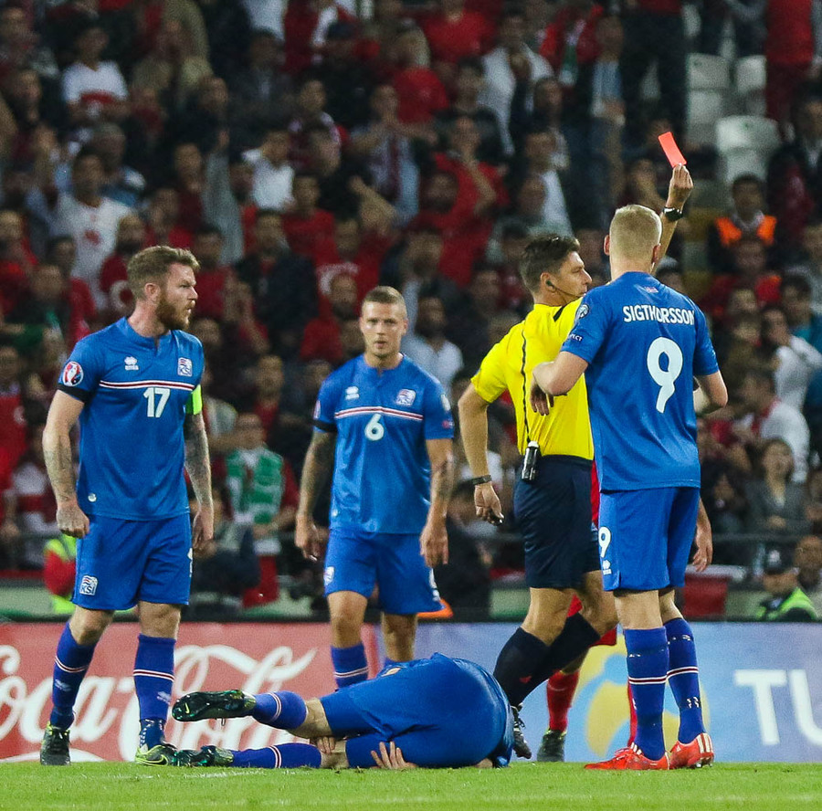 RAUTT SPJALD!!! GÖKHAN TÖRE HAMRAR NIÐUR JÓN DAÐA OG FÆR RÉTTILEGA AÐ LÍTA RAUÐA SPJALDIÐ!!! HÖRMULEGT BROT, JÓN DAÐI LIGGUR SÁRÞJÁÐUR EFTIR!