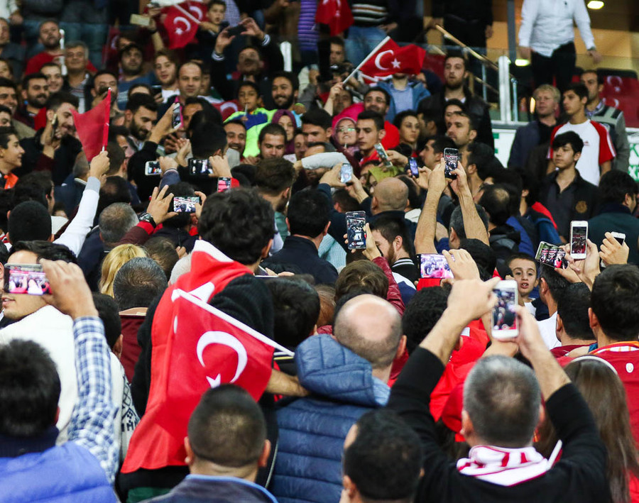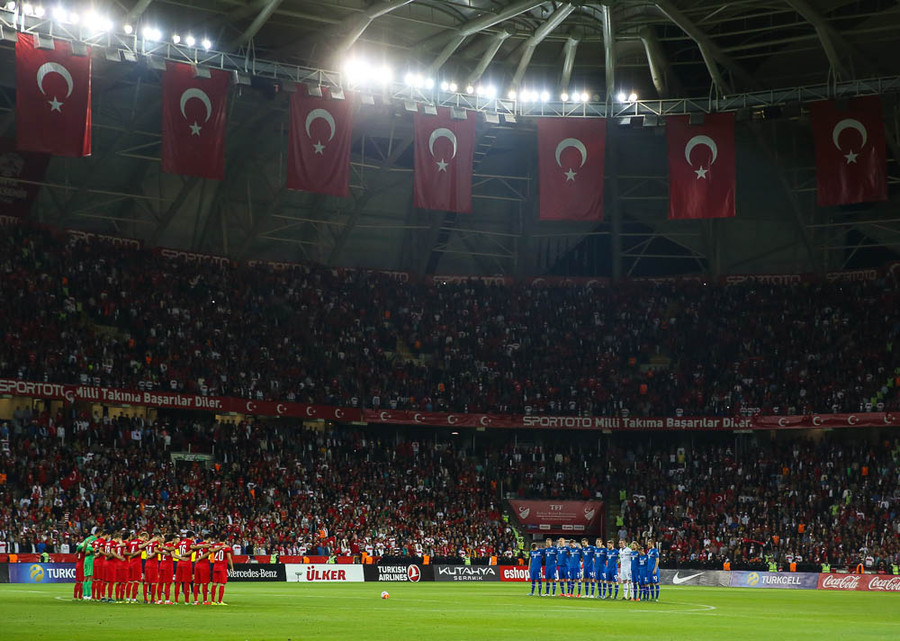 Fyrir leik var mínútu þögn til minningar um fórnarlömb hryðjuverkaárásarinnar í Ankara.. nema Tyrkirnir þögðu bara alls ekki.