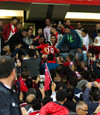 Íslensku stuðningsmennirnir í Konya eru ekkert sérstaklega margir en þeir eru hins vegar hressir. Hér eru þeir að syngja hið vinsæla lag "Ég er kominn heim" á hótelinu fyrir leik.