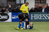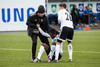 Kassim Doumbia liggur eftir en hann fór niður í eigin teig þegar boltinn var hvergi nærri.