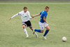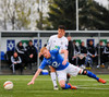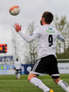 Atli Guðna fær boltann úti á kanti, fer inn að marki og reynir skot sem fer beint í fangið á Kerr.
