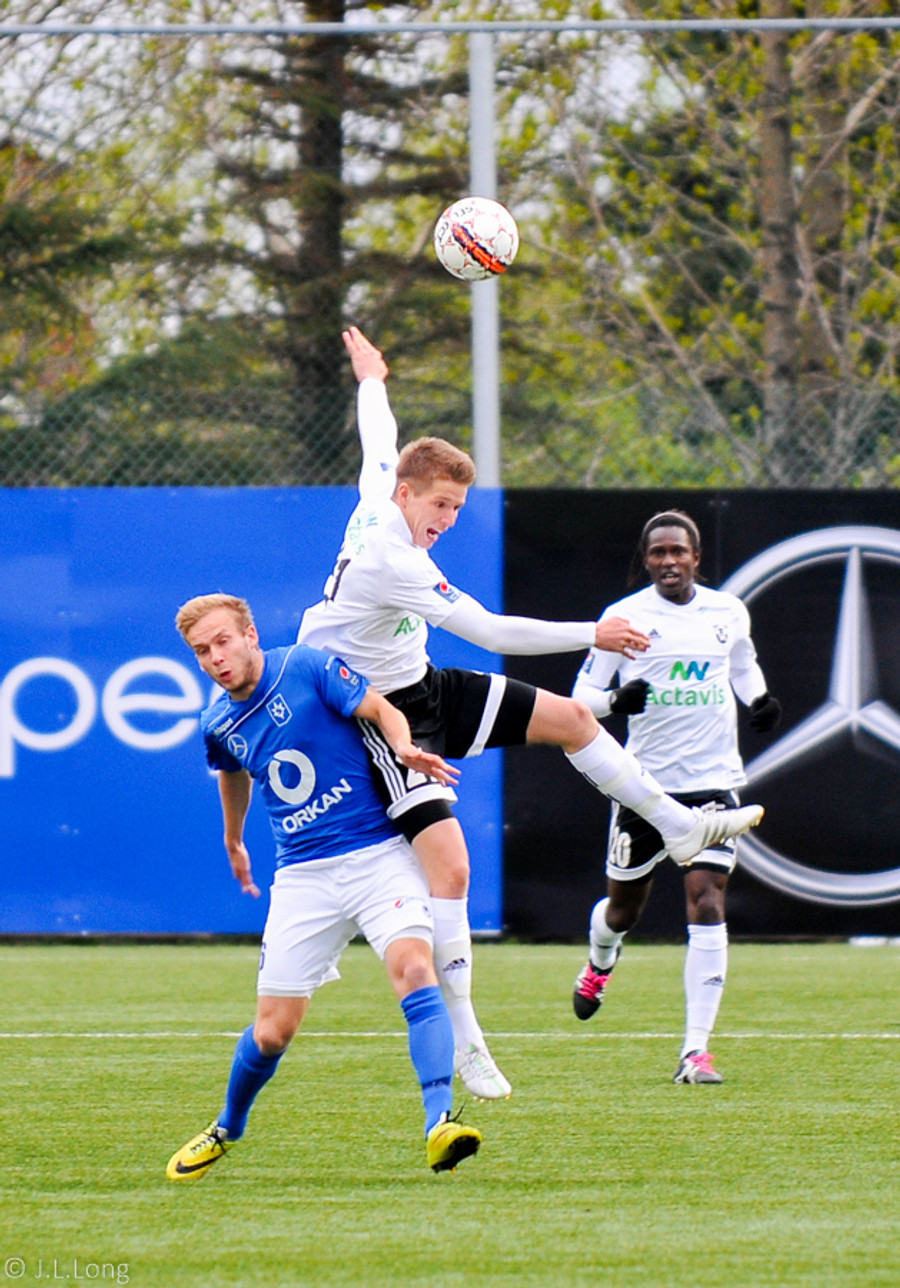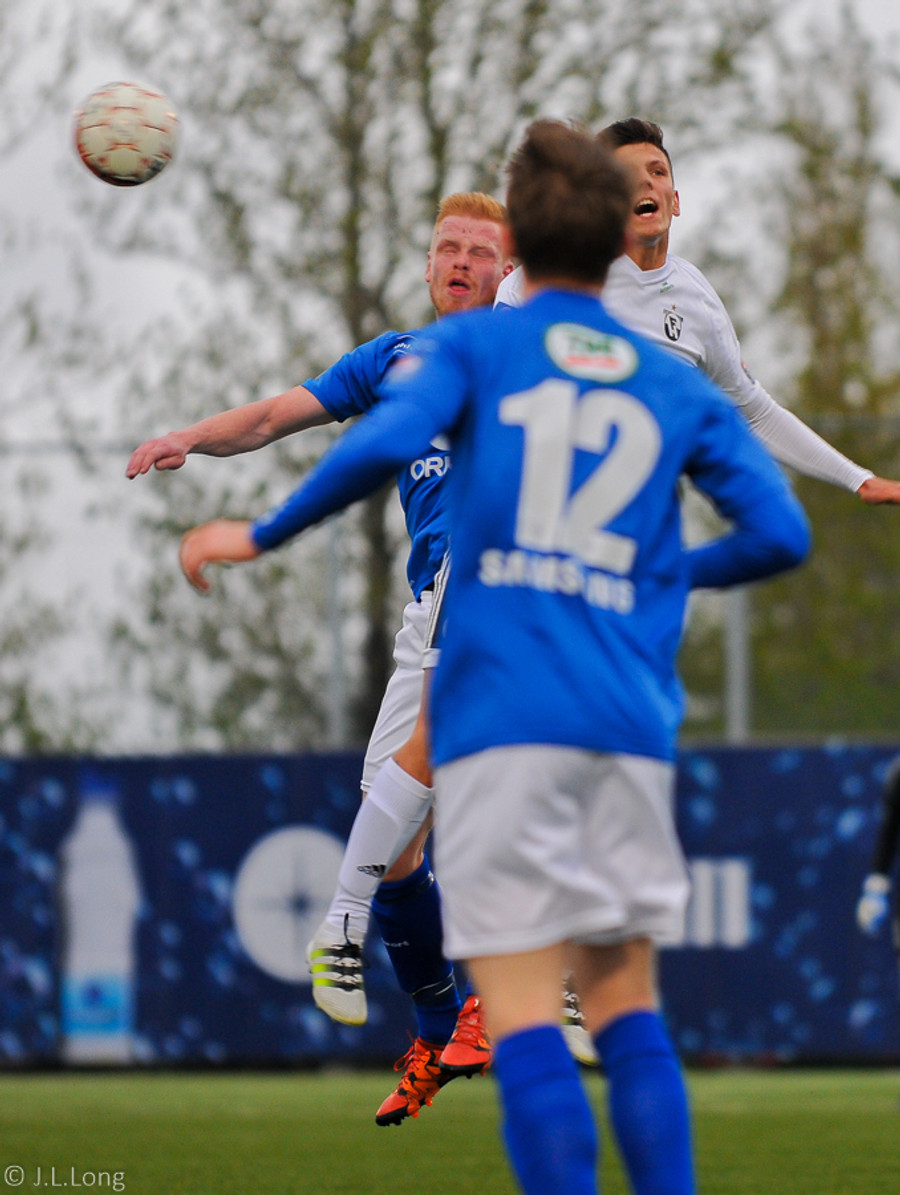 Stjarnan að sækjast eftir jöfnunarmarkinu. Guðjón Baldvins stekkur hæst í hornspyrnu Hilmars en nær ekki að hitta markið úr fínu færi.