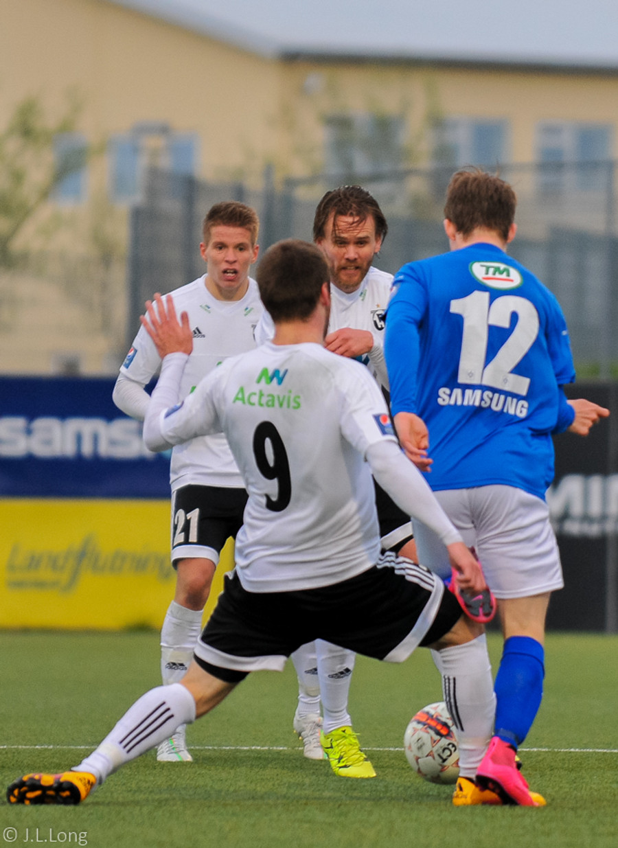Steven Lennon var kominn í góða stöðu og ætlaði að leggja boltann á Atla Guðna sem var aleinn í teignum en Grétar Sigfinnur varðist því virkilega vel og bjargaði.