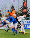 Steven Lennon á fyrstu tilraun seinni hálfleiks. Tekur skot utan teigs sem Kerr á ekki í teljandi vandræðum með.