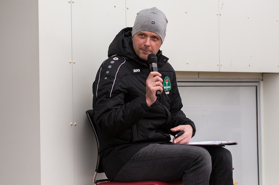 Kári blæs enn kröftuglega og fólk í blaðamannastúkunni er ekki á einu máli um úr hvaða átt hann blæs. Ýmsar kenningar eru á lofti en við segjum bara að það blási í allar áttir.