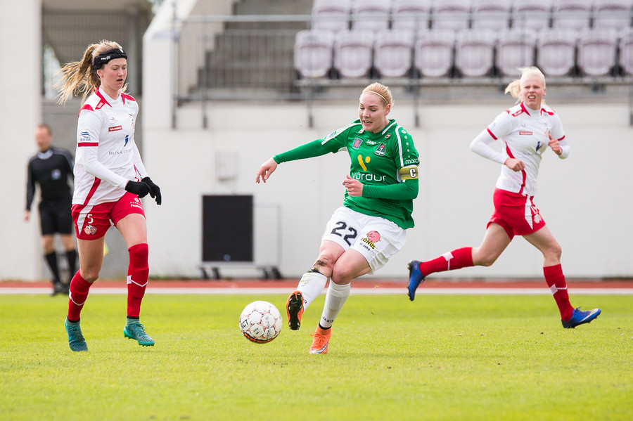 Andrea Mist byrjar seinni hálfleikinn á bjartsýnisskoti lengst utan af hægri kanti. Aldrei hætta.