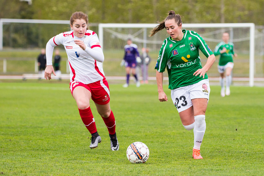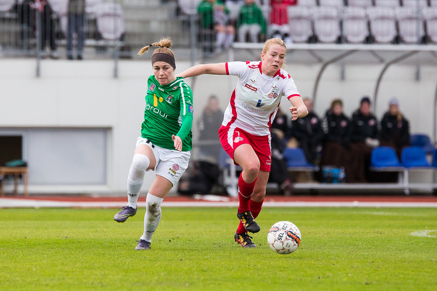 Obbobobb! Þarna munaði engu að Fanndís slyppi í gegn eftir laglega sendingu frá Andreu. Þetta var millimetraspursmál en Fanndís er dæmd rangstæð.