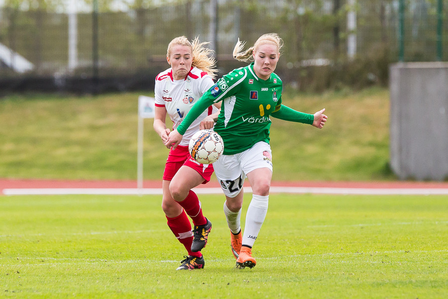 Fyrsta skiptingin í leiknum. Eldfljót Esther Rós kemur inná fyrir Ástu Eir. Esther fer upp á topp og Svava Rós út á hægri kant.