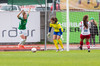 Sandra María reynir langskot. Freistar þess að setja boltann yfir Sonný Láru sem stóð framarlega í teignum en skotið er vel framhjá.