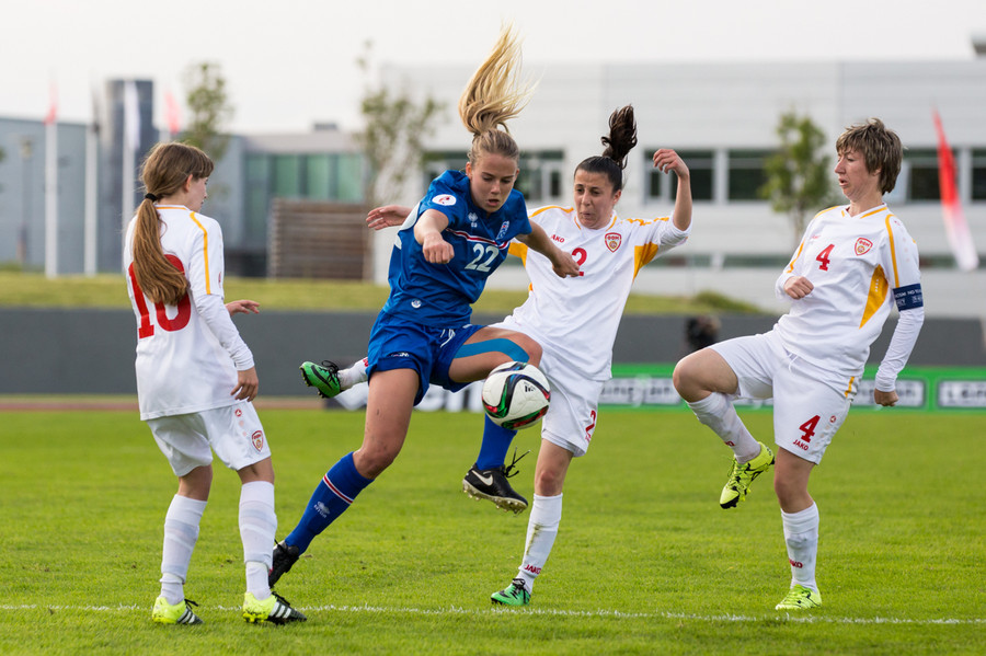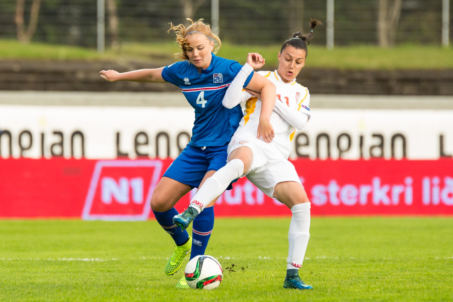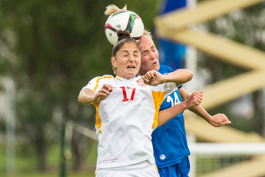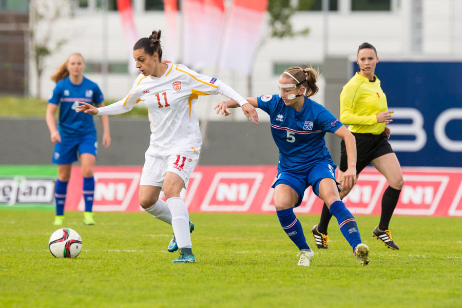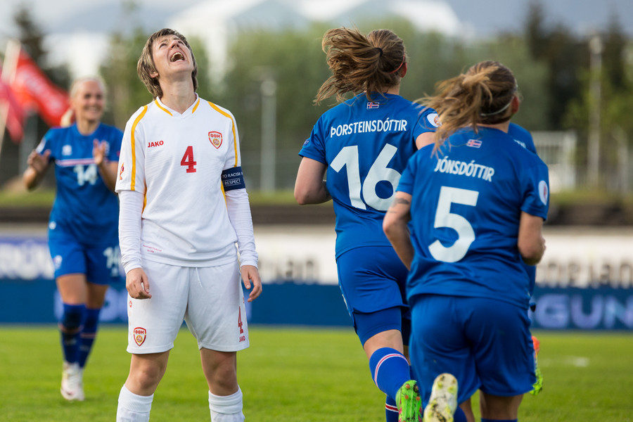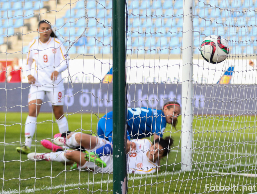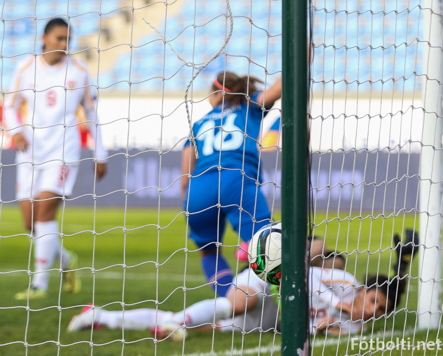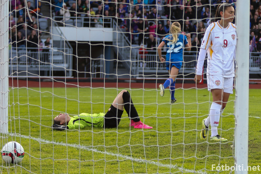 Makedónar voru manni færri á meðan markið kom en Daniela Veleska fékk aðhlynningu vegna meiðsla.