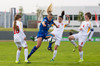 Sara Björk á fyrirgjöf sem Gunnhildur Yrsa nær ekki til. Íslenska liðið byrjar á því að sækja, eins og við var að búast.