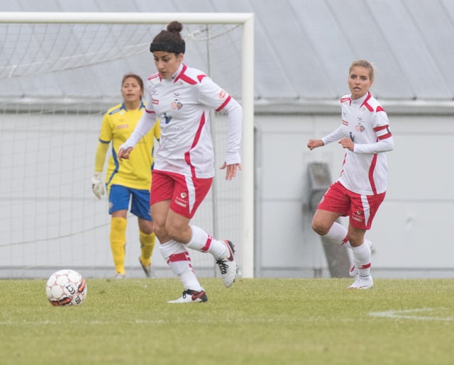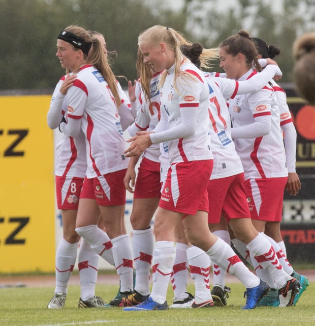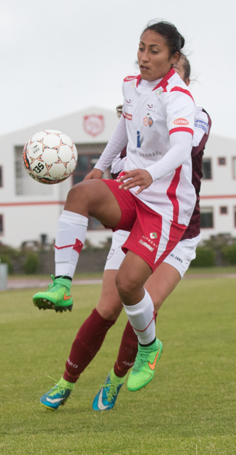 Löng sending innfyrir á Söndru Mayor sem vippar honum skemmtilega í fjærhornið. Þær eru ekki lengi að þessu