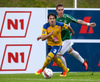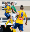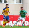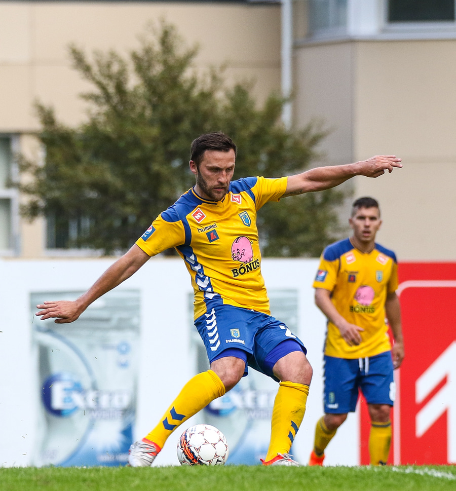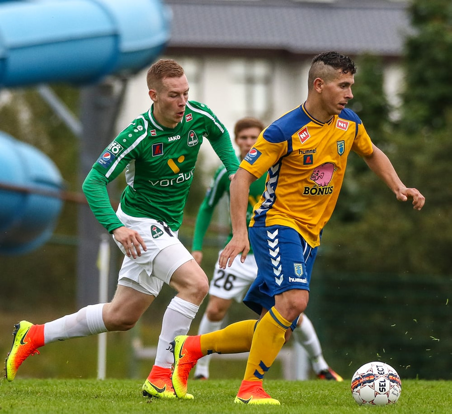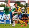 Damir með frábæra langa sendingu á Arnór Svein sem tók frábærlega á móti boltanum og lék á Mario Tadjevic. Arnór átti hættulega sendingu inn á teiginn en ekki bar hún ávöxt.