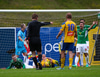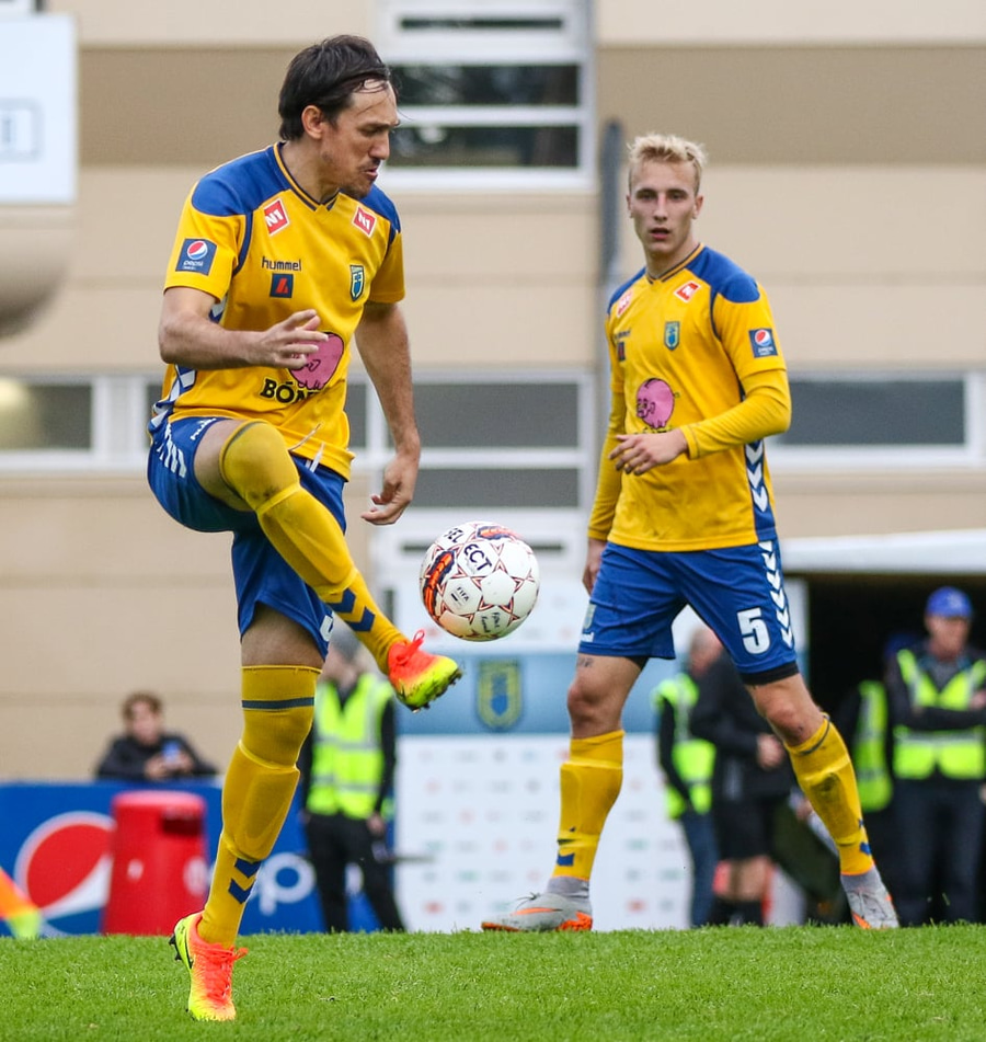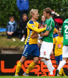 Árni Vilhjálms fær aukaspyrnu rétt fyrir utan teig. Tobias Salquist brjálaður, vill meina að Árni hefði kastað sér niður.