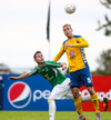 Davíð Kristján Ólafsson með stórhættulega sendingu inn í teiginn en Fjölnismenn bjarga í horn.