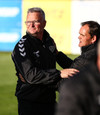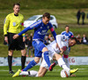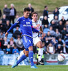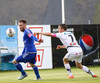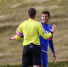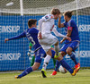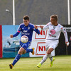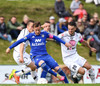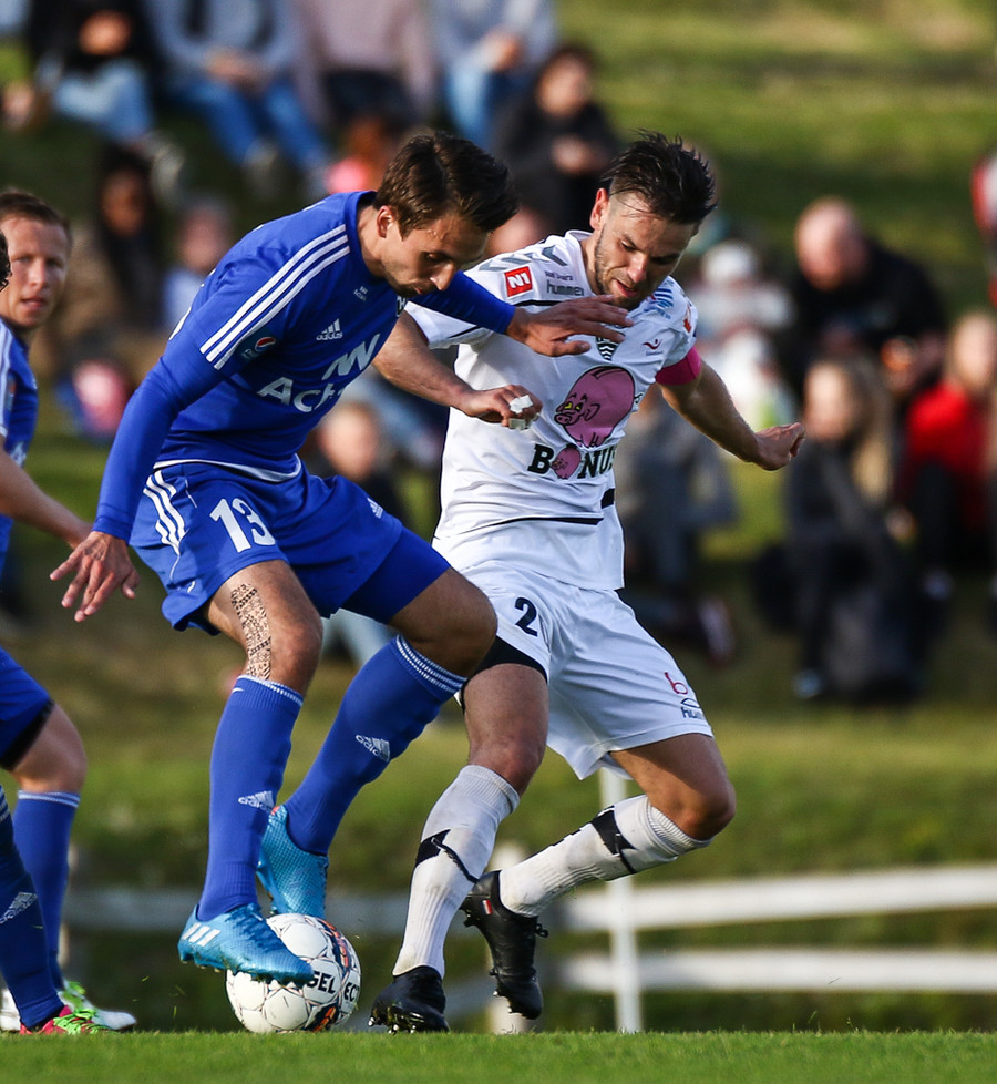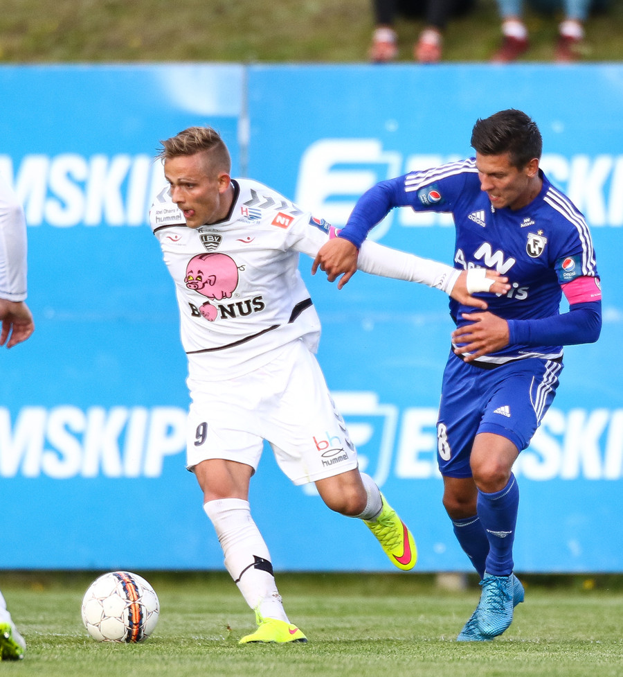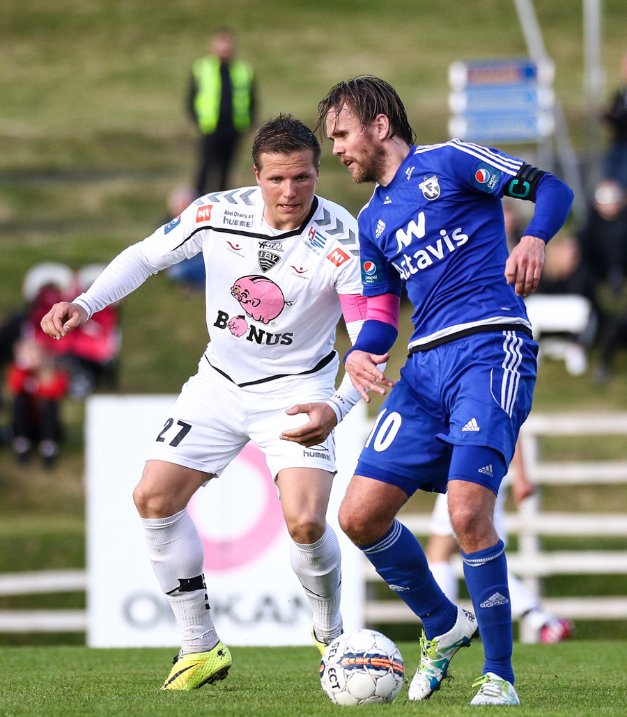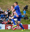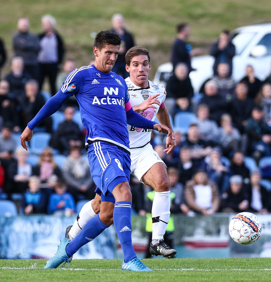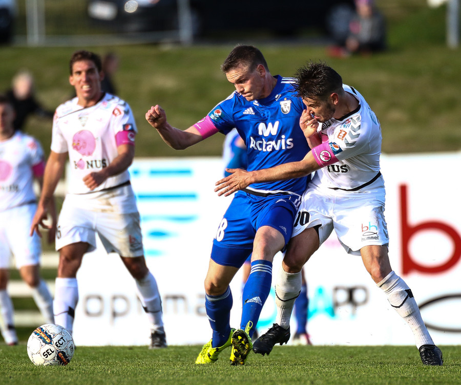 Mikkel og Aron spila vel sín á milli en flaggað er á Mikkel. Gat nú ekki séð að hann væri rangstæður þarna.
