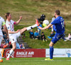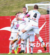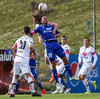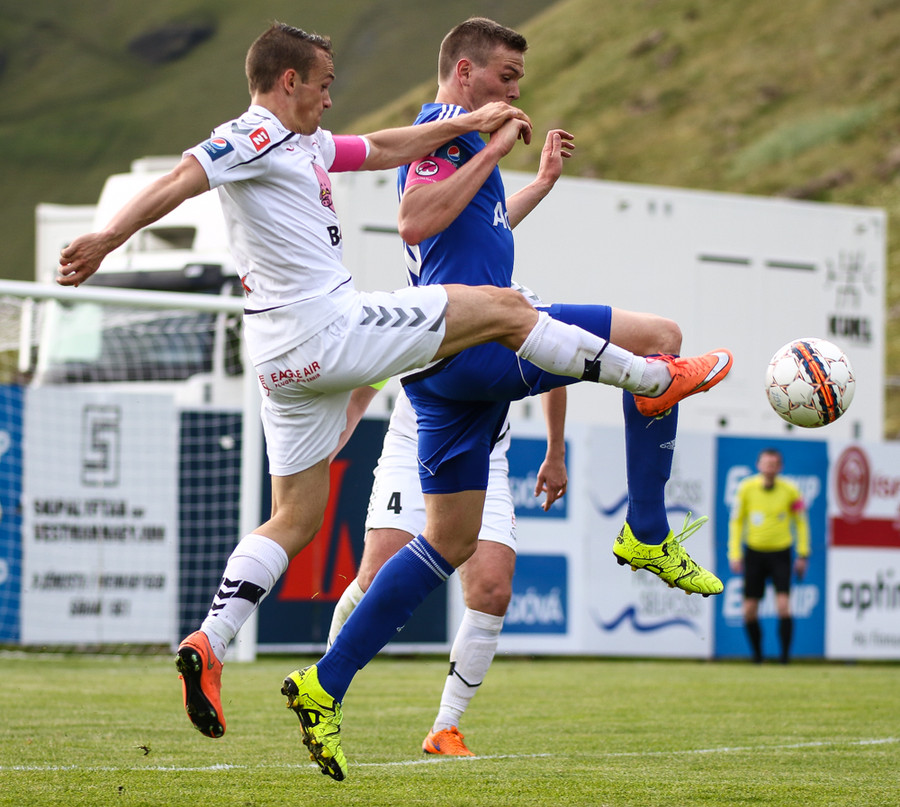 Böðvar setur boltann fyrir en hann er aðeins of hár fyrir Atla Guðnason sem skallar boltann yfir.