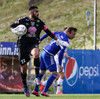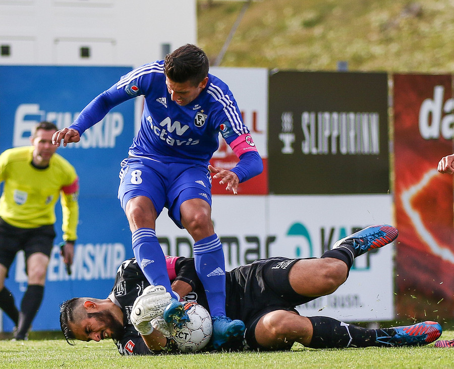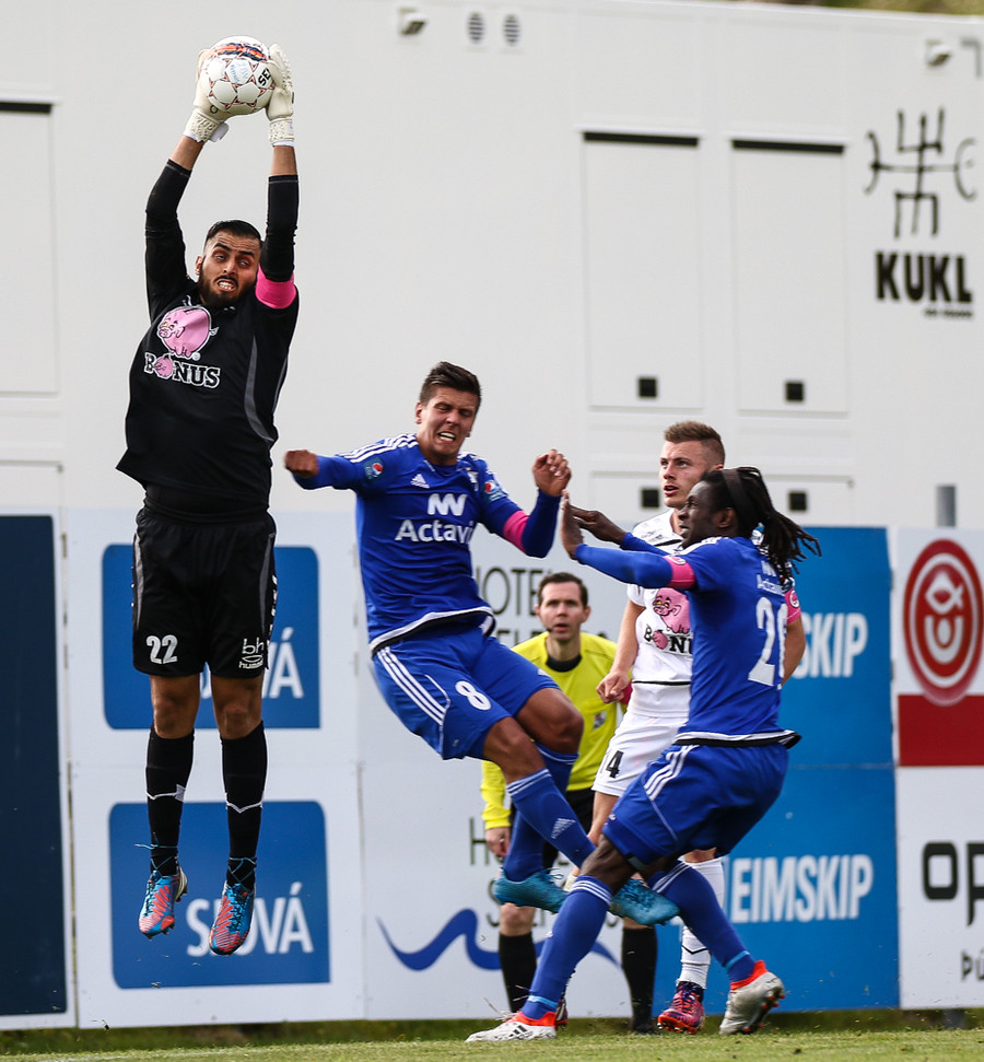 Derby Carrillo ver skot frá Steven Lennon en hann var nálægt því að gefa FH-ingum frákastið!
