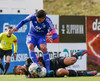 Kristján Flóki tekur Guðmund Stein niður og fær sitt annað gula spjald og er þar með er hann farinn af velli.