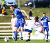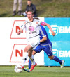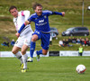 Þvílíkt dauðafæri! Bergsveinn Ólafsson rennur til á vellinum, Simon er fljótur að refsa, kemst einn í gegn og það sem hann þarf að gera er að setja hann framhjá Gunnari í markinu... en skot hans er varið. Ótrúlegt að Simon hafi ekki bætt við öðru marki sínu þarna!