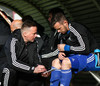 Avni Pepa liggur í valnum og biður um skiptingu. Sýndist hann lenda í smá samstuði við leikmann FH. Ekki er úr mörgu að moða fyrir ÍBV á bekknum, varnarlega séð.
