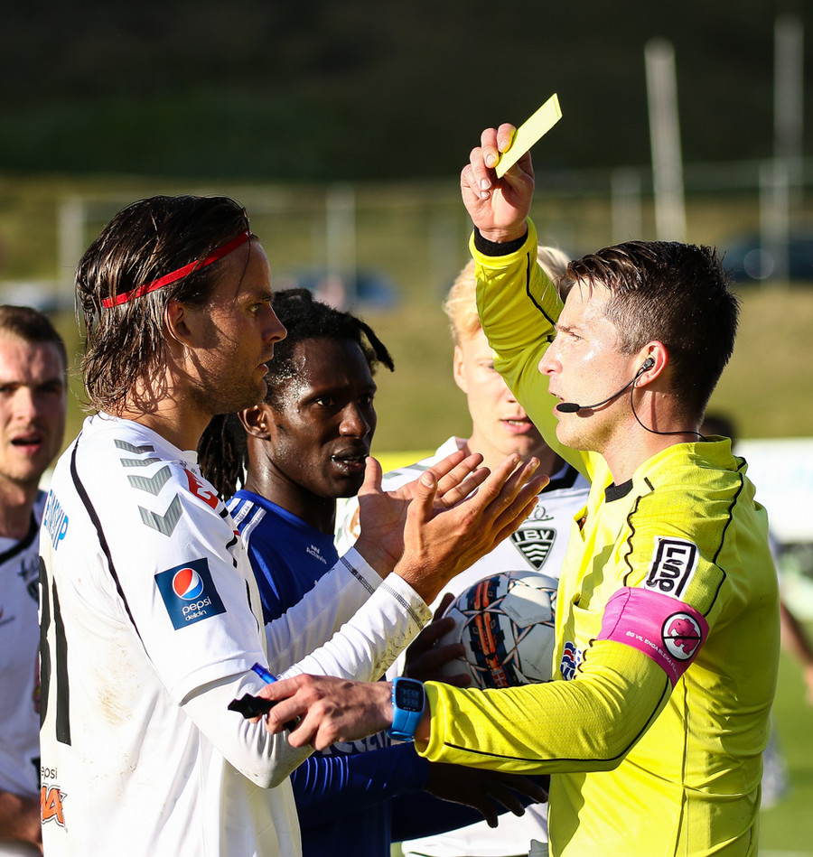 Vilhjálmur er rólegur á flautunni þrátt fyrir ansi harkalegan leik hjá FH. Emil Páls fer inn í Derby þegar hann átti í rauninni aldrei séns í boltann og fær aðvörun fyrir vikið. Einhverjir eru að kalla eftir spjaldi.