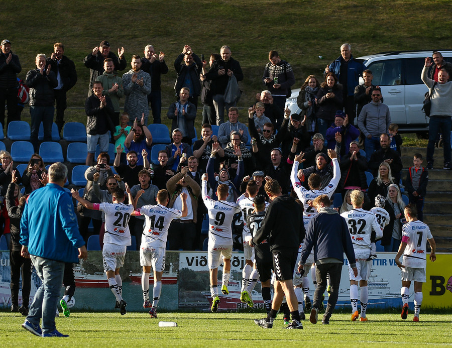 Það eru u.þ.b. 20 mínútur til leiks og það er frábært andrúmsloft á Hásteinsvelli. Fólk er heldur betur farið að tínast til í stúkunni, fjöldinn allur af leikmönnum og fleirum að hita upp og að sjálfsögðu hljóma gömul og góð Þjóðhátíðarlög