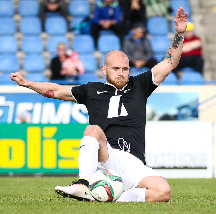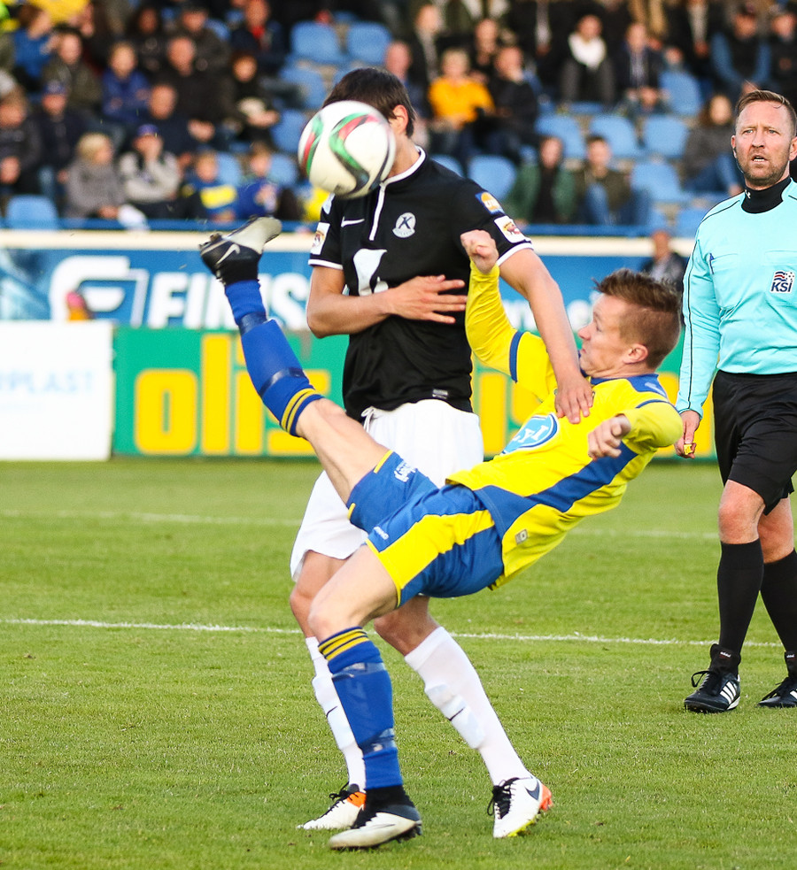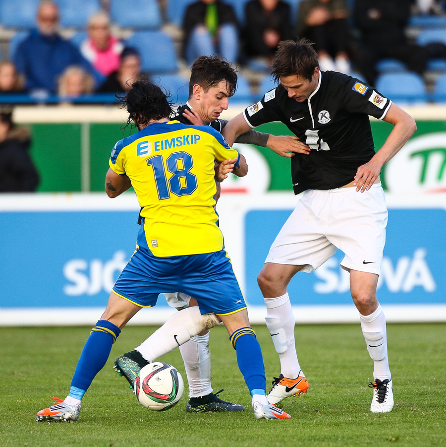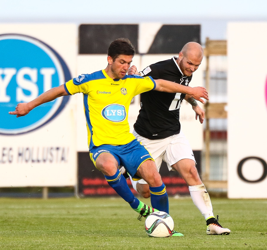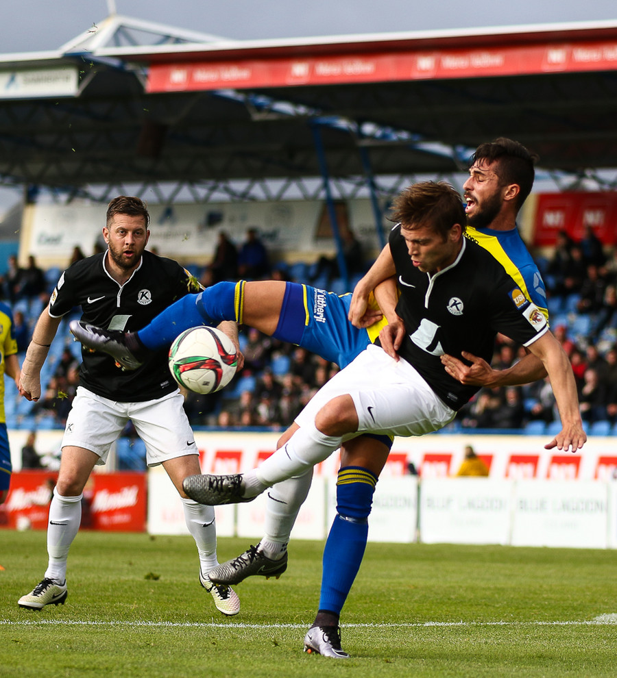 Daniels fer framhjá Einar Orra og er við það að komast í góða stöðu þegar Jónas Guðni kemur askvaðandi og stoppar hann. Góður varnarleikur hjá Jónasi.