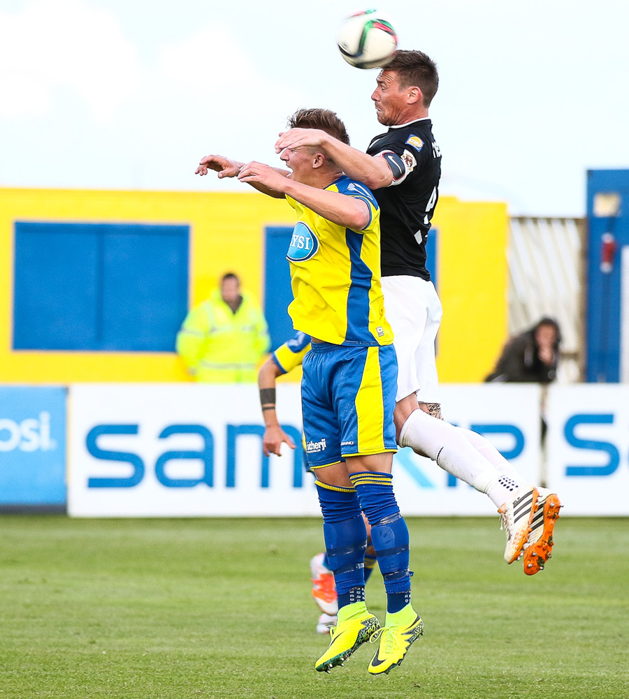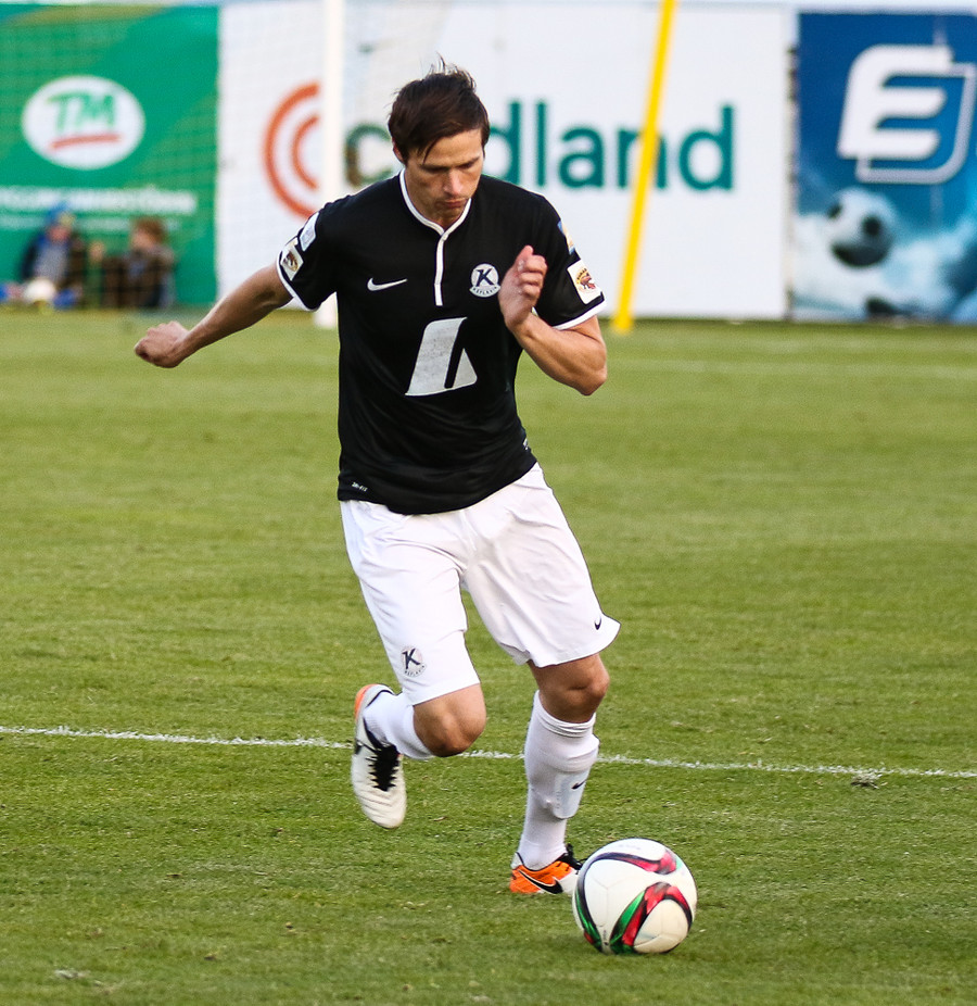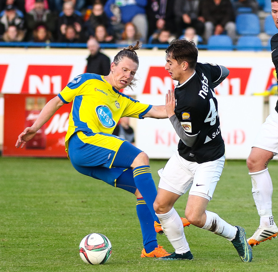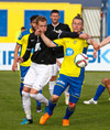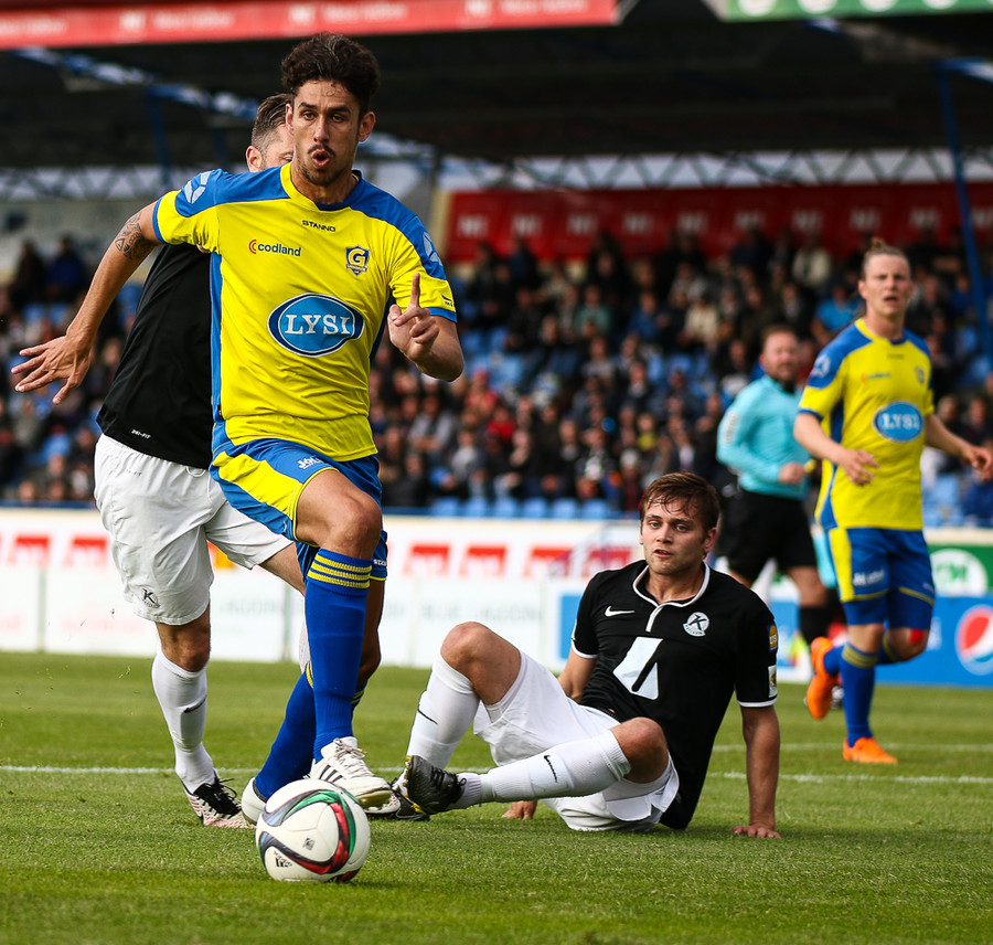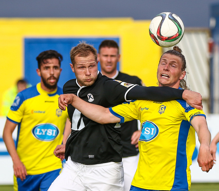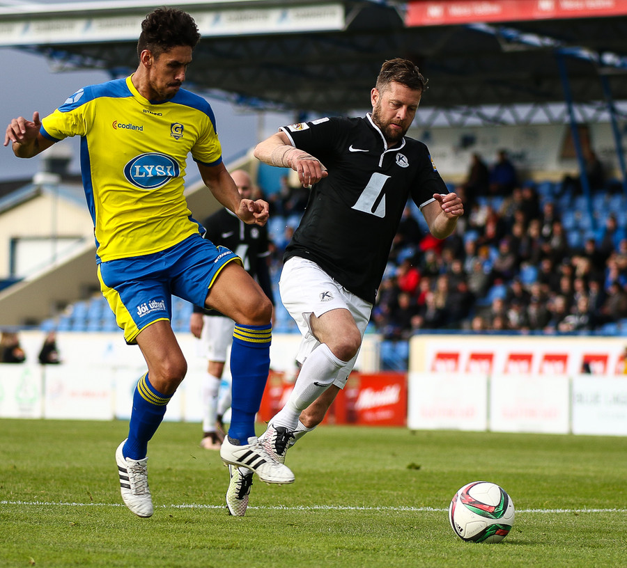 Daniels fer framhjá Einar Orra og er við það að komast í góða stöðu þegar Jónas Guðni kemur askvaðandi og stoppar hann. Góður varnarleikur hjá Jónasi.