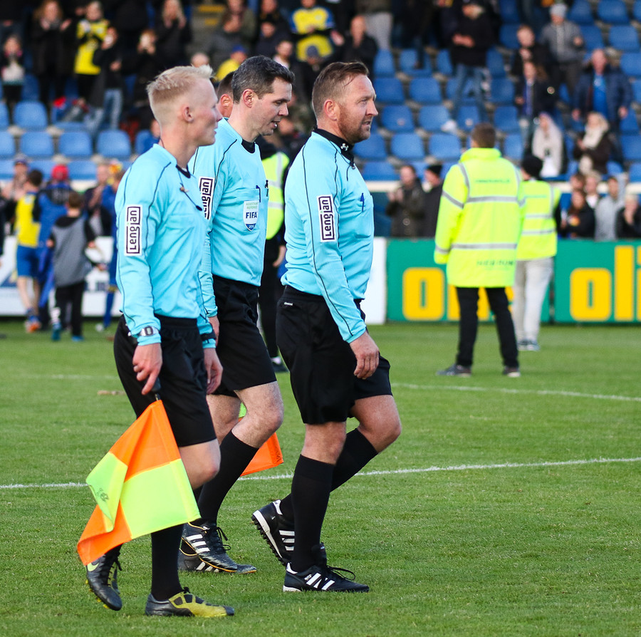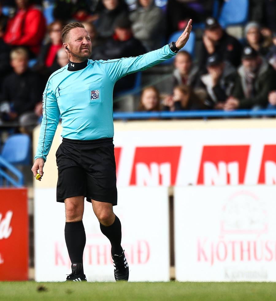 Fasteignasalinn Guðmundur Ársæll Guðmundsson dæmir leikinn en Frosti Viðar Gunnarsson og Sigurður Ingi Magnússon eru aðstoðardómarar.