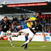 Jónas Guðni með bestu tilraunina hingað til. Carswell sótti og boltinn barst á Jónas sem tók skot utan teigs sem Jajalo gerði mjög vel í að slá frá.