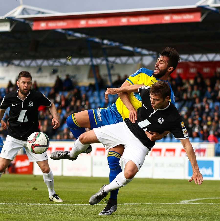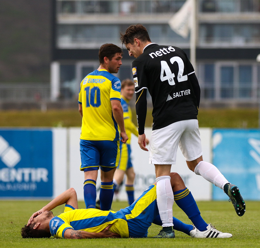 Josiel Oliveira tæklar Einar Orra sem bregst illa við og ýta þeir eitthvað hvorn í annan. Óþarfi og Guðmundur Ársæll stekkur inn í og stoppar þá.