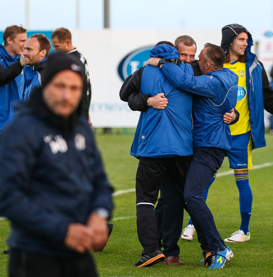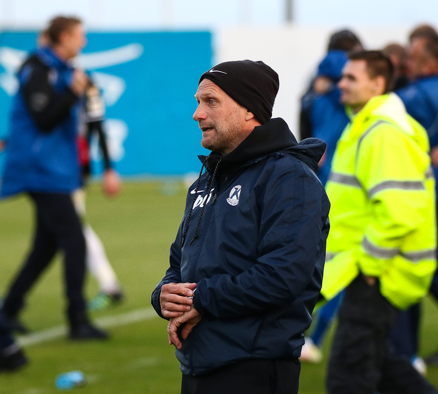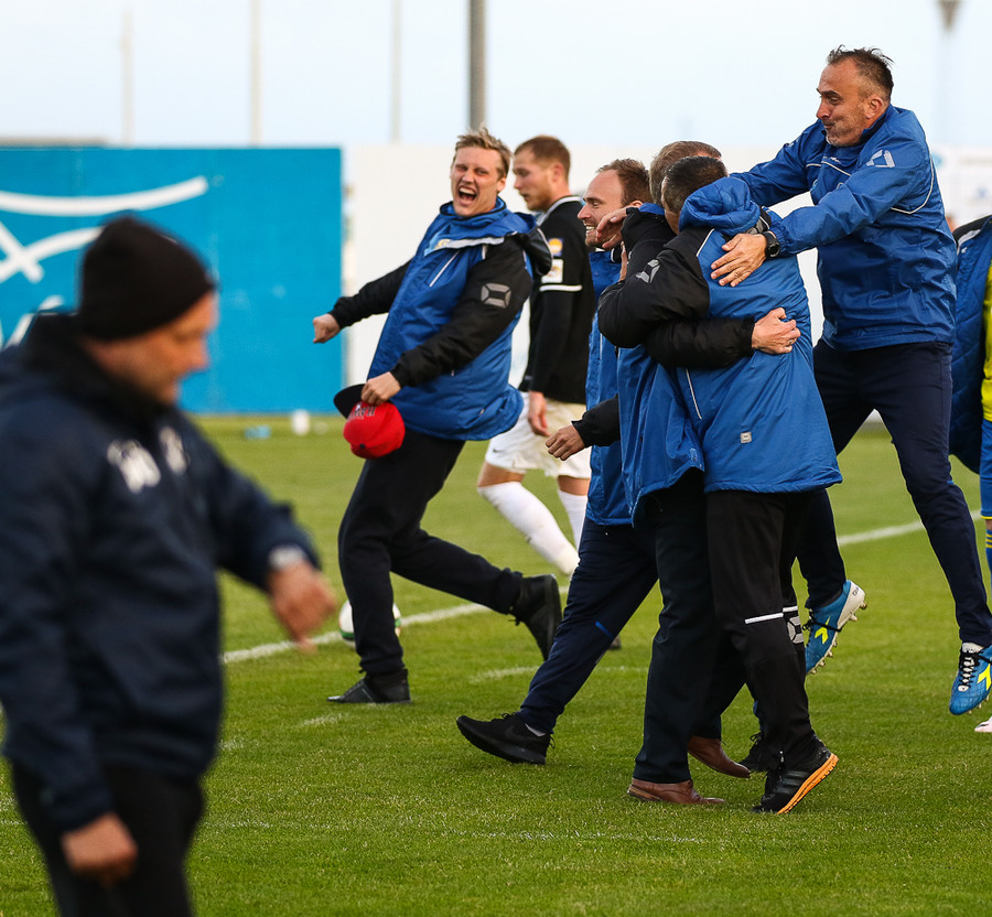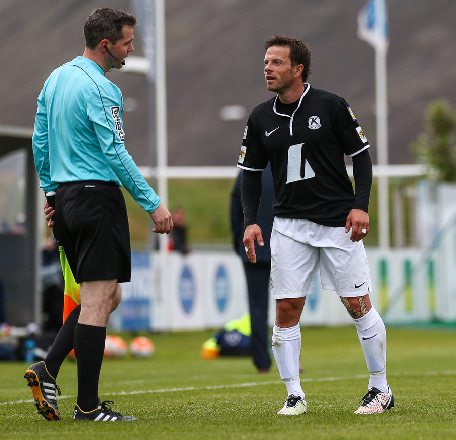 Magnús er kominn einn í gegn en er flaggaður rangstæður. Hann klárar samt sem áður færið og er Guðmundur Ársæll ekki glaður með það.