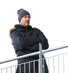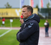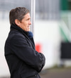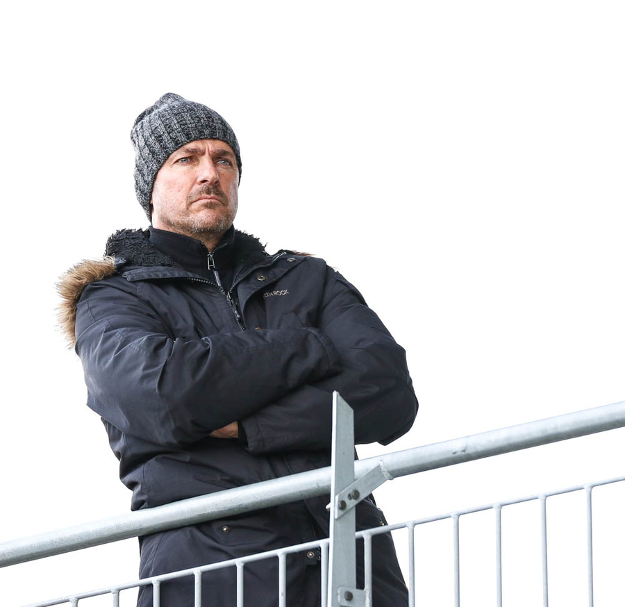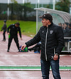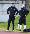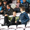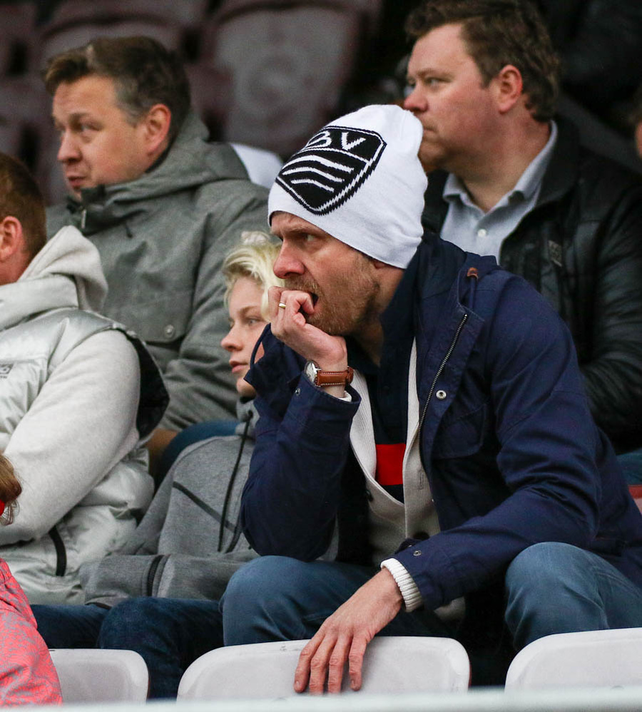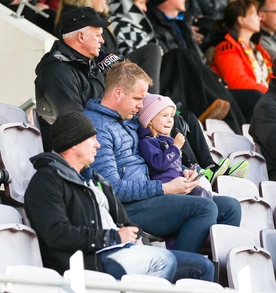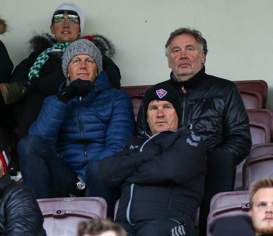 Heimir Hallgrímsson, landsliðsþjálfari, mætir í stúkuna að fylgjast með. Inni á vellinum er lítið í gangi.