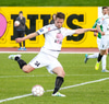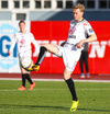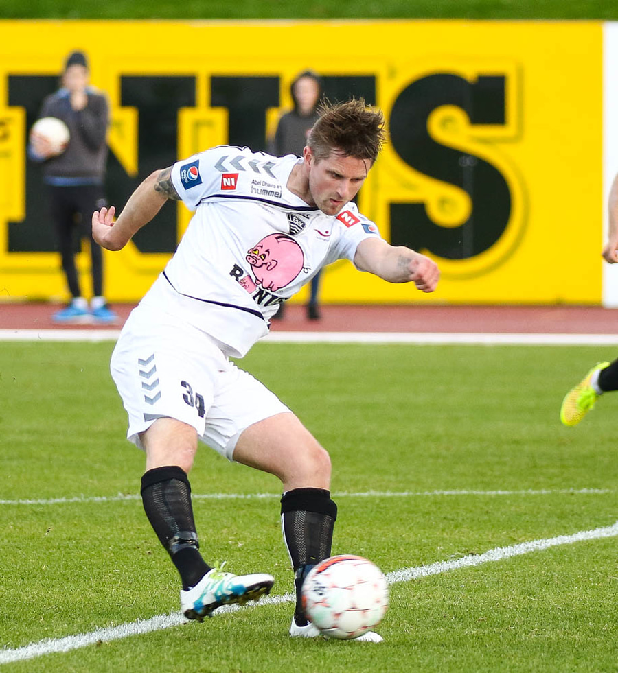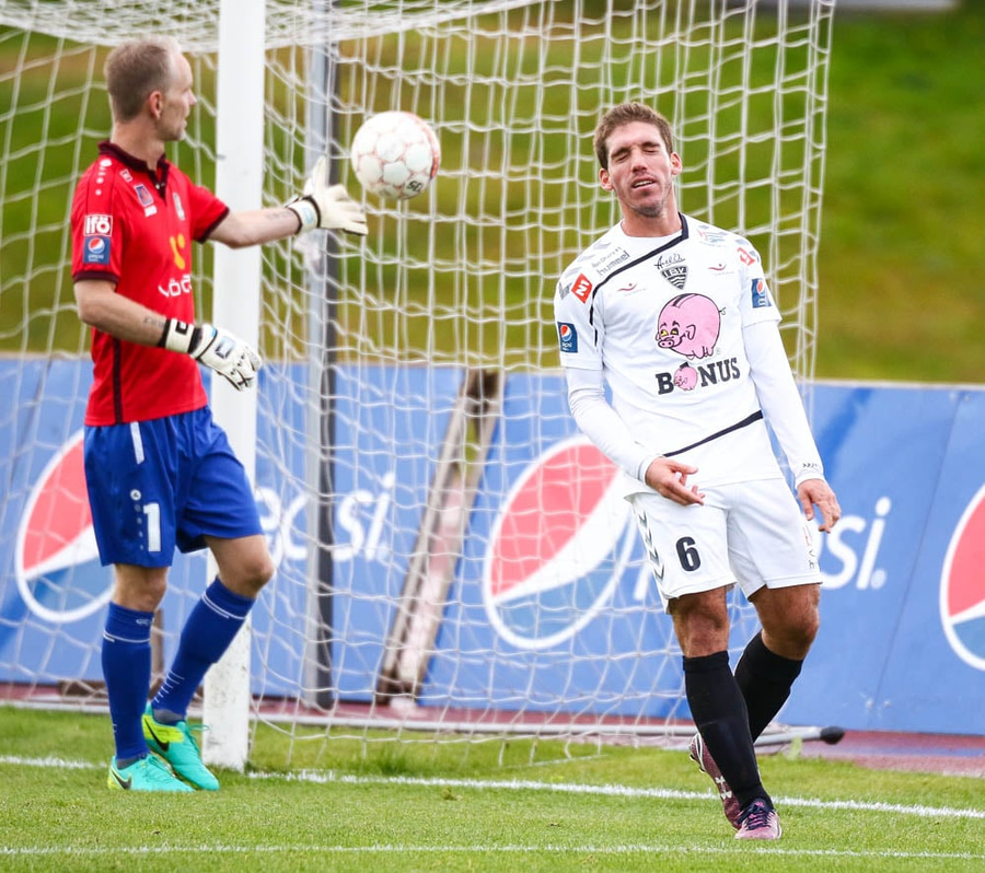 Uxinn með skot í stöng! Er stekari í baráttunni við Elfar Frey og á skot sem fer í stöngina og rúllar þaðan eftir marklínunni. Munaði engu að Uxinn stimplaði sig strax inn með marki.