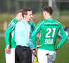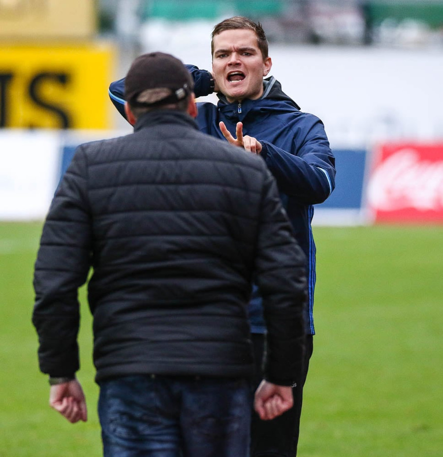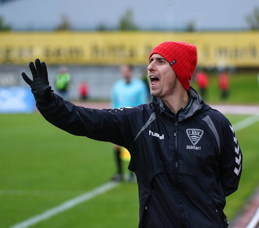 Eyjamenn hafa verið ósáttir við dómgæsluna í leiknum og hafa látið mikið í sér heyra á bekknum. Vilhjálmur Alvar mætir og róar menn niður. Segir Inga Sigurðssyni meðal annars að slaka á.