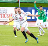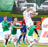 Blikar bruna upp í skyndisókn, 4 á 4. Atli fær boltann hægra megin í teignum en skýtur framhjá.