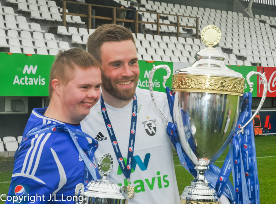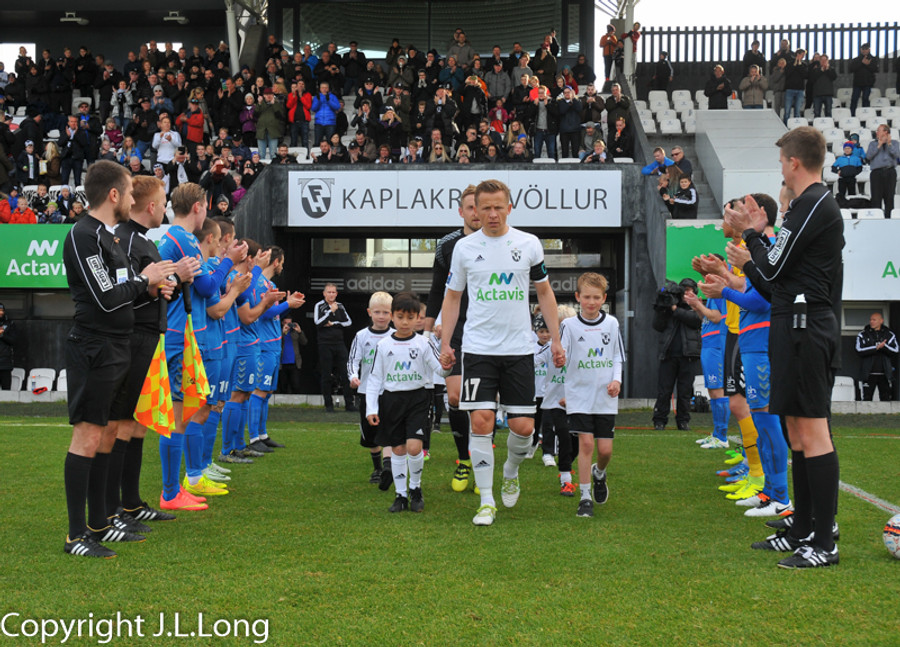 Botnleðju Heiðar er kominn út á völl með Daða Lár og spilar sá fyrrnefndi undir söng steggsins. Líf og fjör.