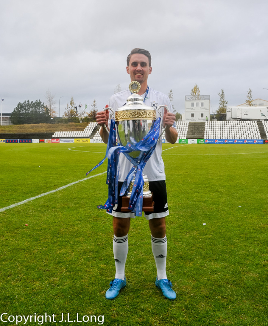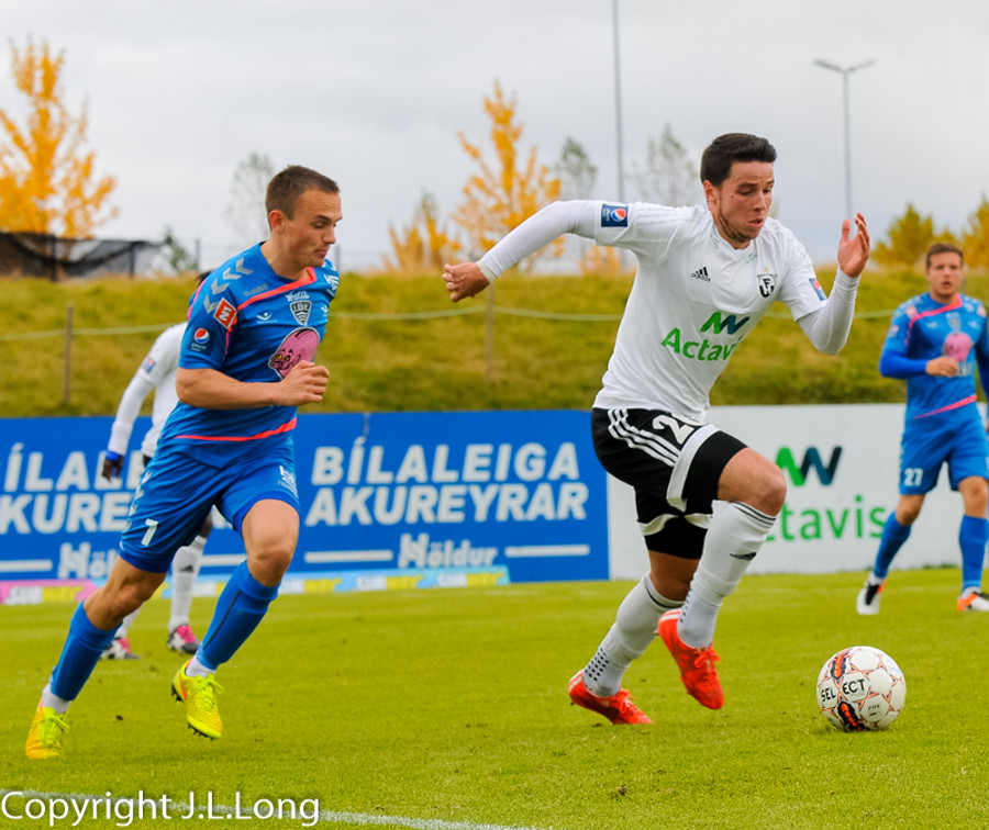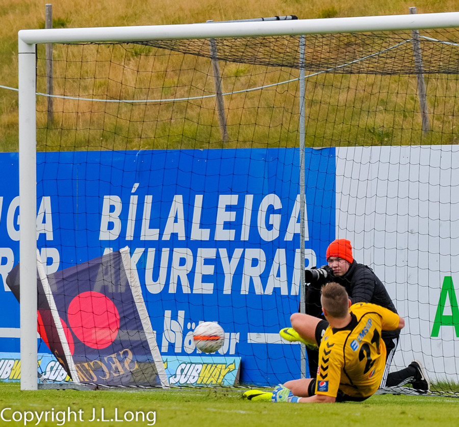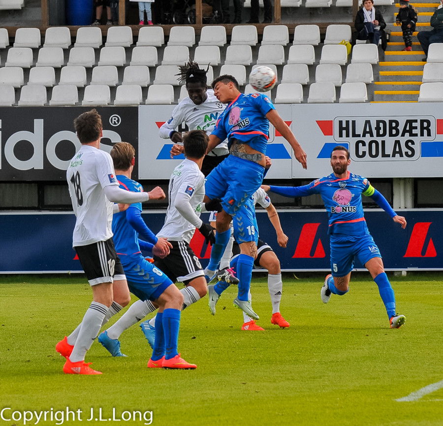 Góð hornspyrna frá Hendrickx sem Halldór Páll greip mjög vel! Sýndi þarna sterkar hendur.