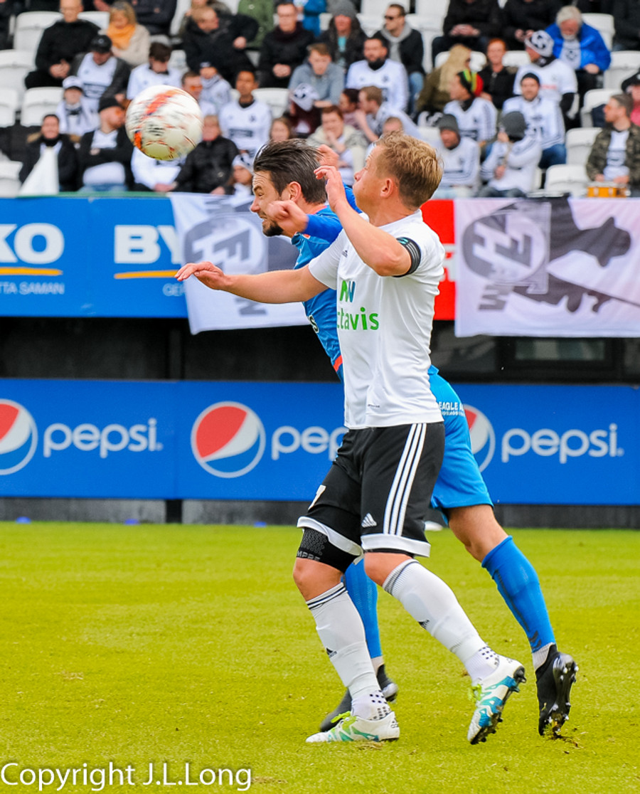 Hewson með skot í bakið á Pepa. Dálítið stutt bil þeirra á milli en hefði verið stórhættulegt ef ekki hefði verið fyrir Pepa.