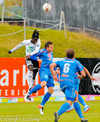 Hornspyrna hjá FH og Kassim mætir á fleygiferð og straujar þarna tvo Eyjamenn í baráttu um boltann.
