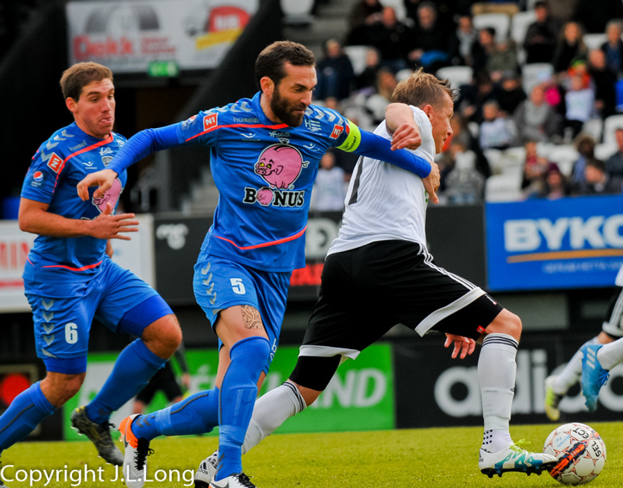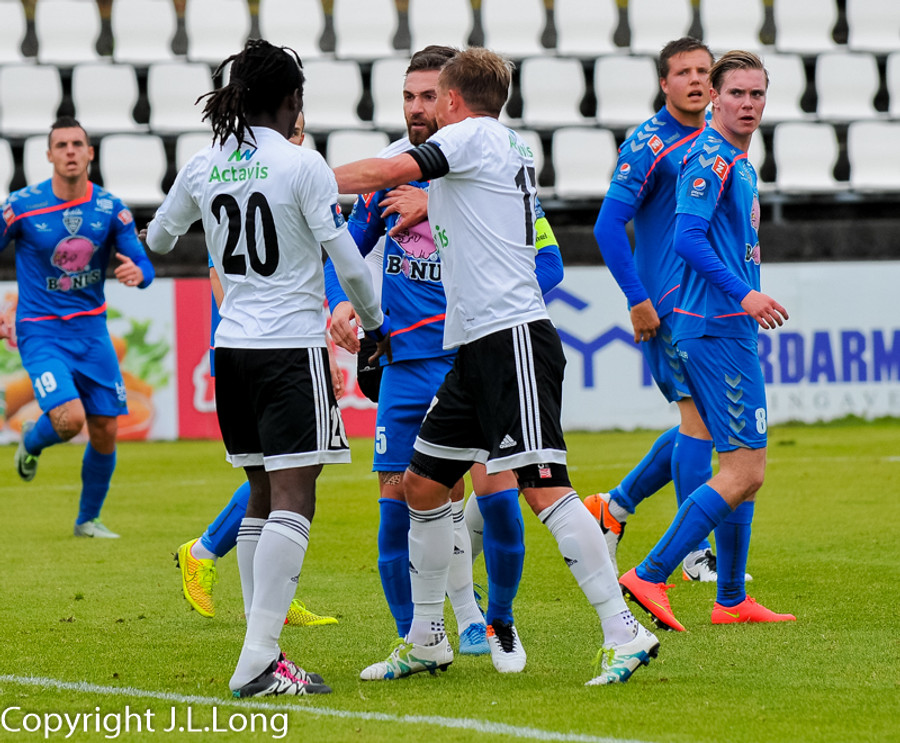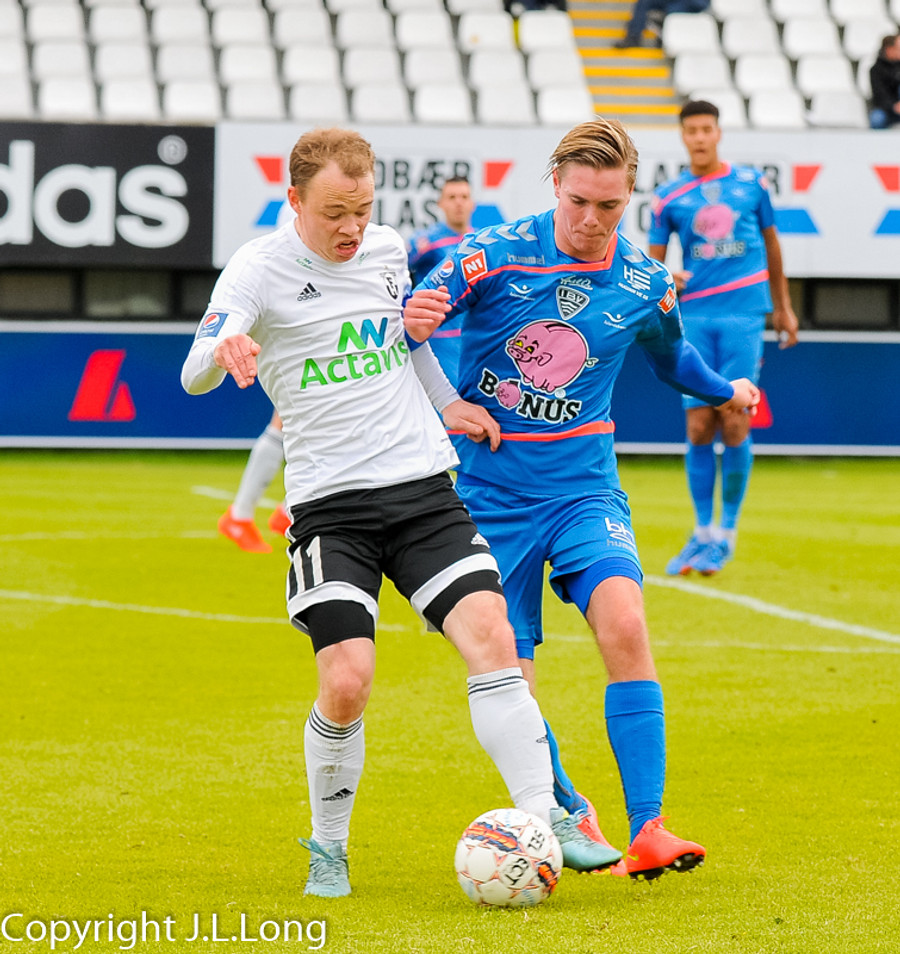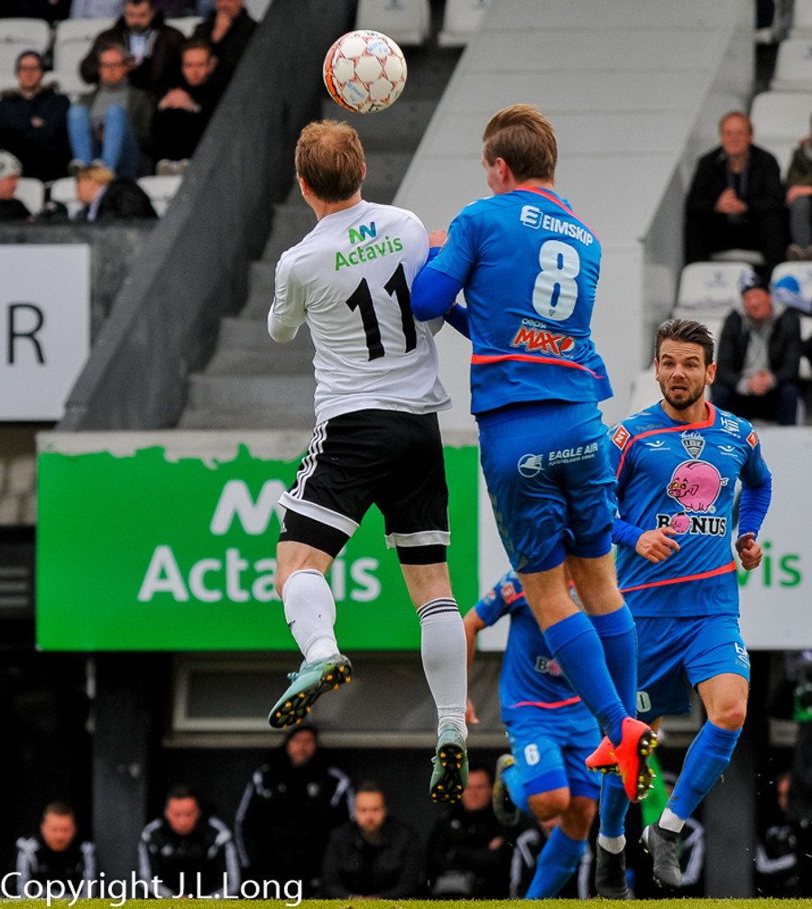 Maigaard með skot í STÖNGINA!!! Frábær sending hjá Aroni á Mikkel sem lét vaða rétt fyrir utan teig og í stöngina.