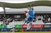 Kassim liggur eftir samstuð við Elvar Inga. Virtist ekki mikið en Kassim heldur um andlitið. Fékk greinilega smá högg á nefið.