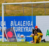 Öruggt! Setti boltann til vinstri en Halldór Páll fór til hægri. 1-1!