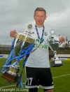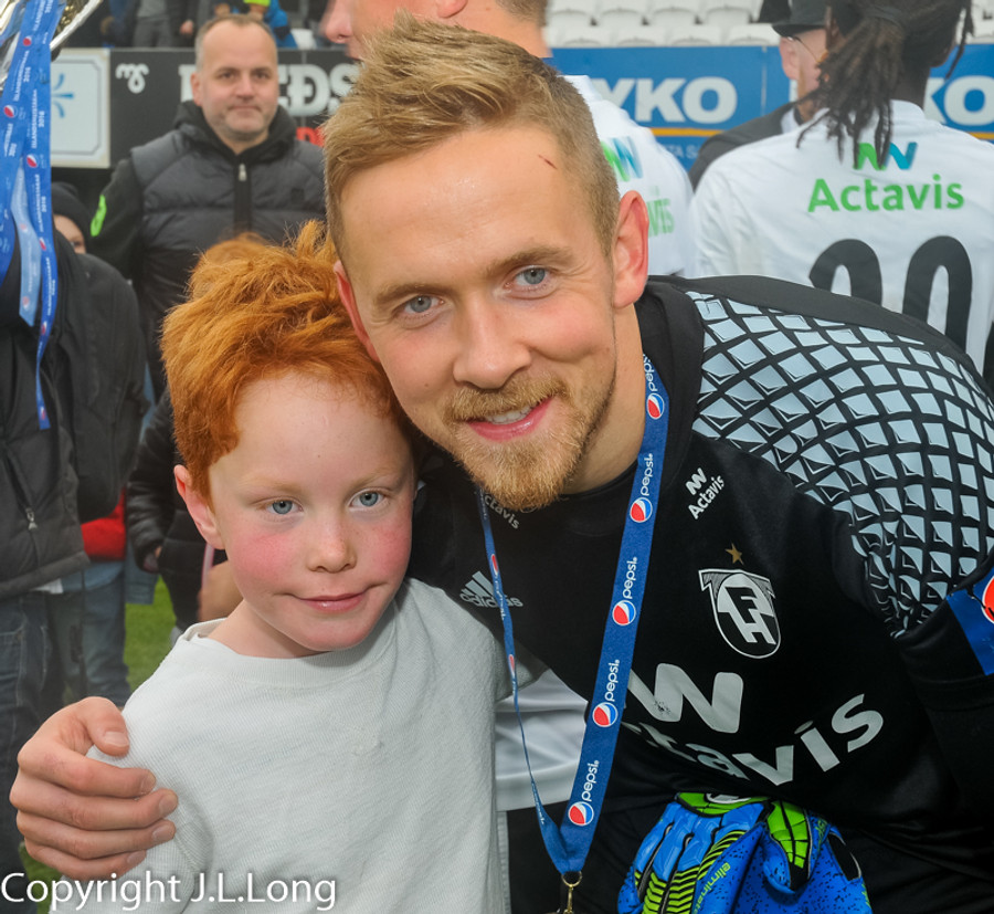 Mikill fögnuður er í stúkunni þar sem steggur gengur inn á svæðið. Steggurinn er enginn annar en Daði Lárusson, fyrrum markmaður FH.