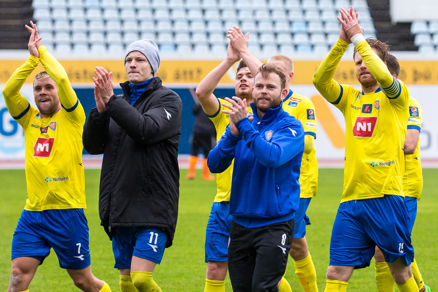 KA er komið aftur upp í deild þeirra bestu eftir tólf ára fjarveru. Gaman að fá þá gulu aftur upp og það er mikil eftirvænting í þeirra röðum fyrir þessum leik. Það verður góð mæting að norðan í Kópavoginn í dag.