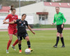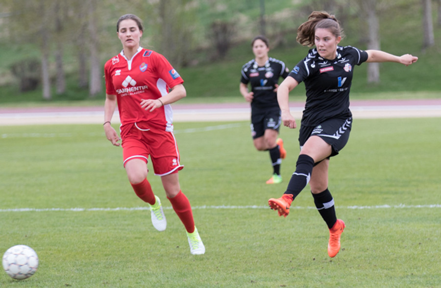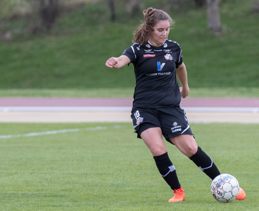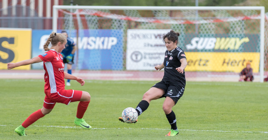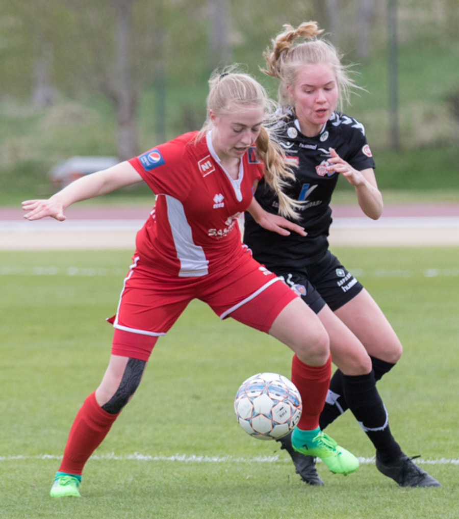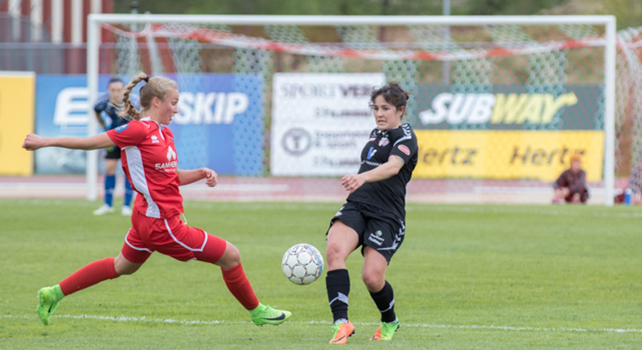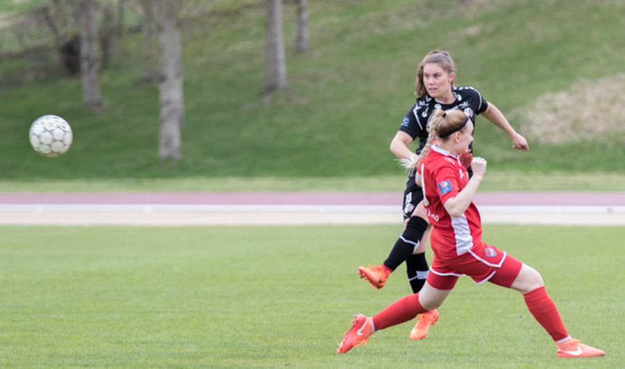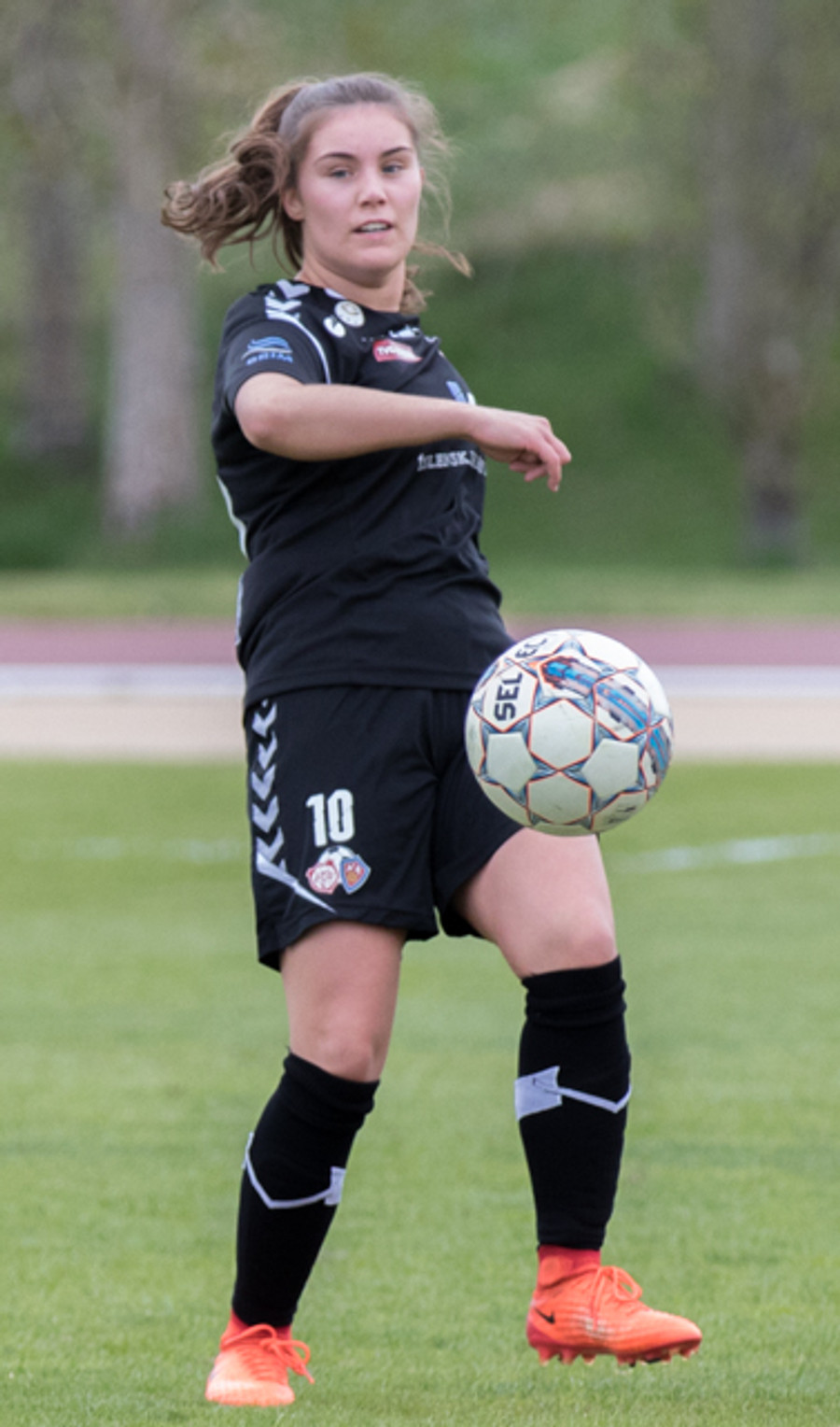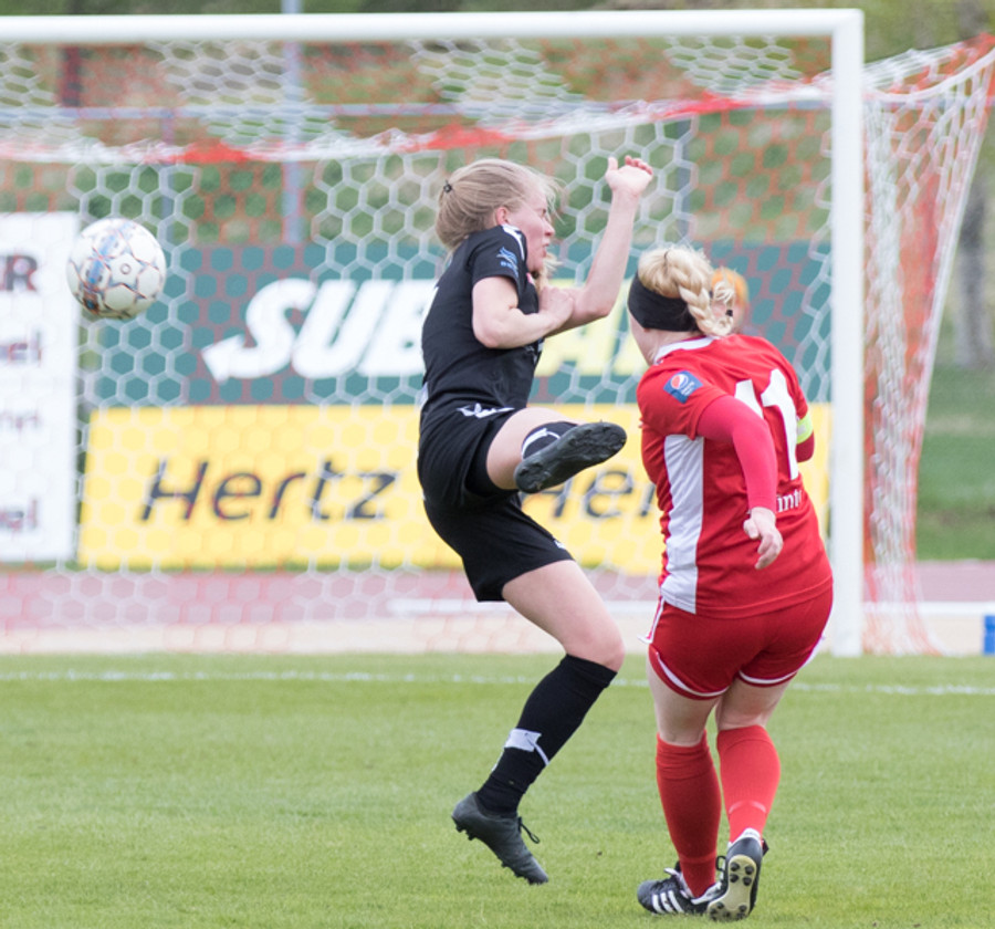 Hulda Björg á skalla á markið úr aukaspyrnunni sem Tori á í engum vandræðum með. Arnar Þór flautar til hálfleiks um leið og Tori spyrnir frá markinu.