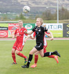 Margrét Árnadóttir fær fínt færi inn á teig Hauka en Tori kemst í skalla hennar áður en hann fer í markið.