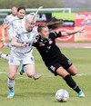 Cloe vinnur hér hornspyrnu eftir enn eitt áhlaupið á vörnina. Þær eru orðnar skíthræddar við hana heimastúlkur.